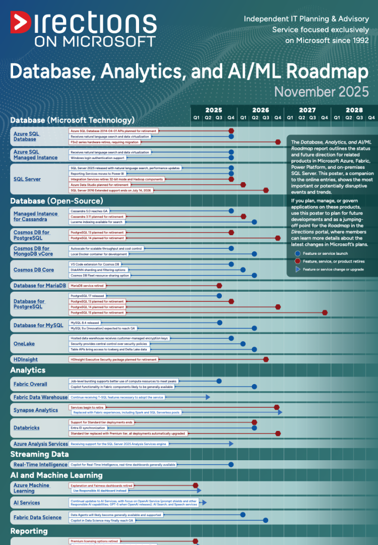 Get access to this and thousands of other unbiased analyses, roadmaps, decision kits, infographics, reference guides, and more, all included with membership. Comprehensive access to the most in-depth and unbiased expertise for Microsoft enterprise decision-making is waiting.