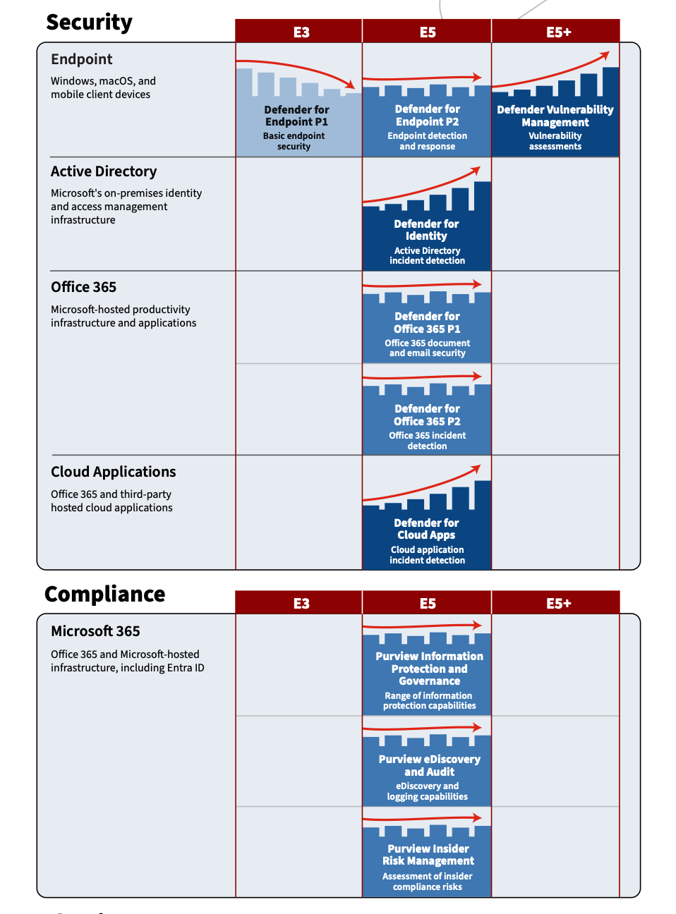 The Security, Compliance, and Identity Roadmap provides information about services and software (cloud and on-premises) that help to keep data, client endpoints, and infrastructure managed, secure, and compliant with regulatory requirements. This includes information about each product and major changes that are expected with each service. The core of all Microsoft 365 infrastructure runs in Microsoft’s own cloud and typically cannot be used on-premises, in Microsoft’s clouds, or in third-party clouds, and always requires Internet connectivity.